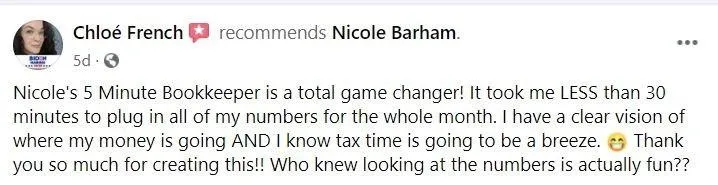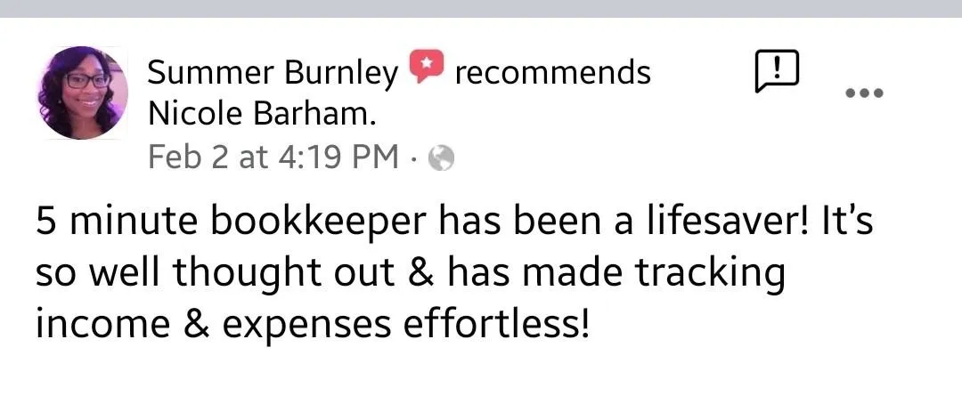 So I learned how to create simple systems to start tracking my own finances. That work eventually led to me creating 5 Minute Bookkeeper™.